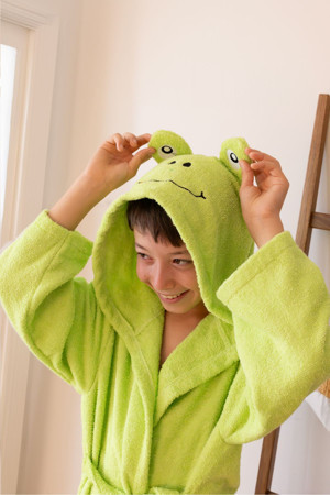 Kapüşonlu Çocuk Bornozu,Pamuklu,Kulaklı,Hayvan Figürlü-Kurbağa