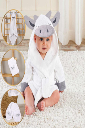 Yenidoğan/Bebek Bornoz Seti 4 Parça / İNEK