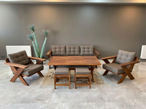 Firuze Masif Ahşap Bahçe Balkon Koltuk Kestane Ağacı 3+1+1 Koltuk, Masa Takımı