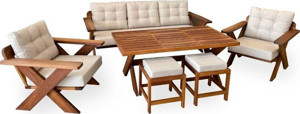 Bery Masif Ahşap Bahçe Balkon Koltuk Kestane Ağacı 3+1+1 Koltuk, Masa Takımı