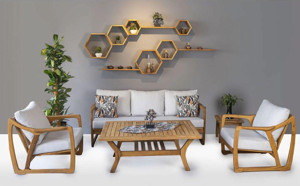 Conforlove Bahçe Balkon Masif Kayın Ahşap Koltuk 1 Adet İkili 2 Adet Tekli Koltuk ve Orta Sehpa