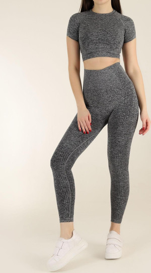 Dikişsiz Push-up Toparlayıcı Batik Desen Spor Tayt Takımı Gri S-M