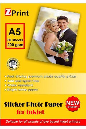 Yapışkanlı Sticker Fotoğraf Kağıdı Parlak 200Gsm A5 50Yp (Epson, Canon, Hp, Brother)