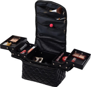 Profesyonel Makyaj Lifting Tırnak Büyük Kapasiteli Siyah Katlı Makyaj Çantası