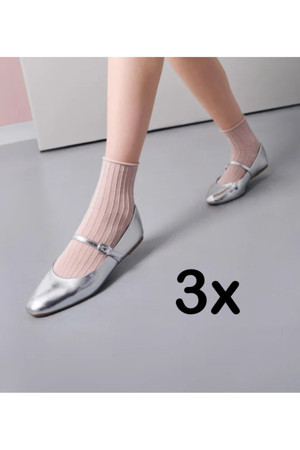 3’lü Derbili Simli Roll Top Lastiksiz Kadın Soket Çorap
