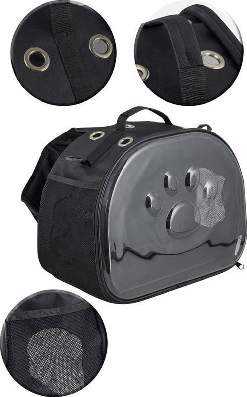 - Şeffaf kapaklı kedi taşıma sırt çantası.