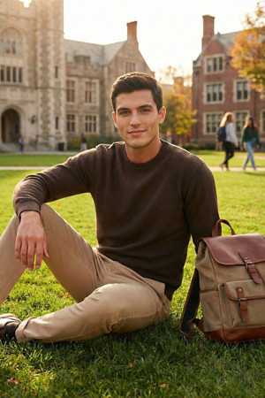 Buratti Slim Fit Bisiklet Yaka Pamuklu Erkek Kazak 456201 KAHVE - Image 1