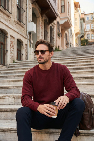 Buratti Slim Fit Bisiklet Yaka Pamuklu Erkek Kazak 456201 MÜRDÜM - Image 1