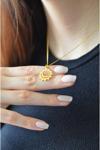 Ay ve güneş sembolleriyle süslenmiş bu kolye, hem estetik hem de anlamlı bir takı seçeneği olarak öne çıkar