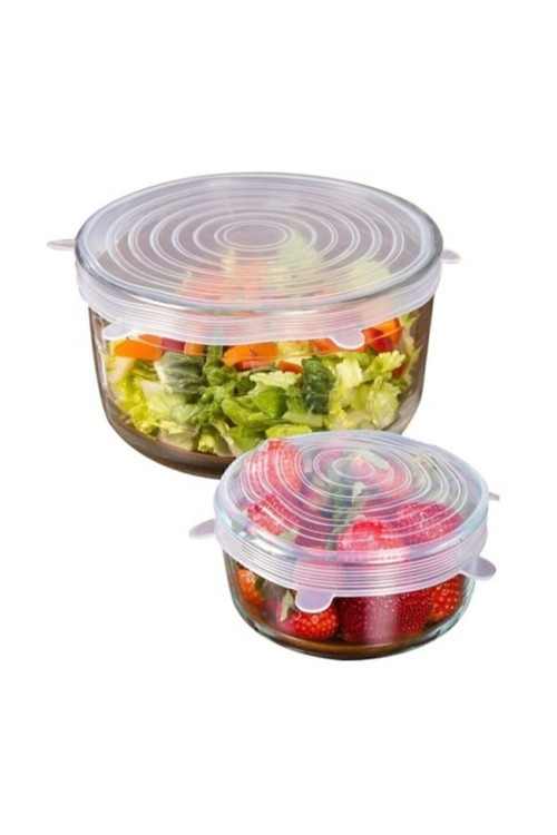 6 farklı ölçülerde silikon kapak seti çeşitli boyutlarda 6 adet şeffaf silikon kapak içerir.