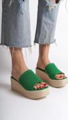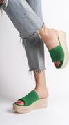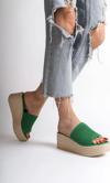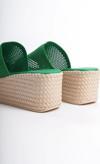 Marla Dolgu Topuklu Ortopedik Taban Hasır Görünümlü Triko Kadın Terlik - Kt Yeşil