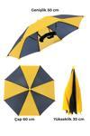 Kafaya Takılan Şapka Şemsiye Gölgelik Plaj Yazlık Kafa Şemsiyesi Sarı Lacivert KAFASEMS001SL