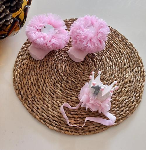MARS BABY Kız Bebek Özel Gün 1 Yaş Pembe Doğum Günü Taç ve Tütü Kokoş Kıvrık Çorap Set