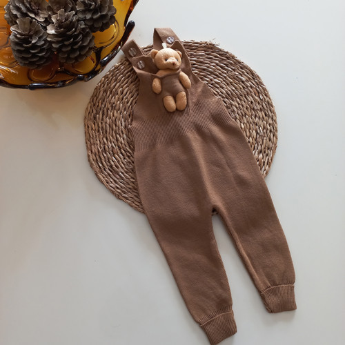 Kız Bebek Triko Oyuncak Ayılı Salopet Kahve