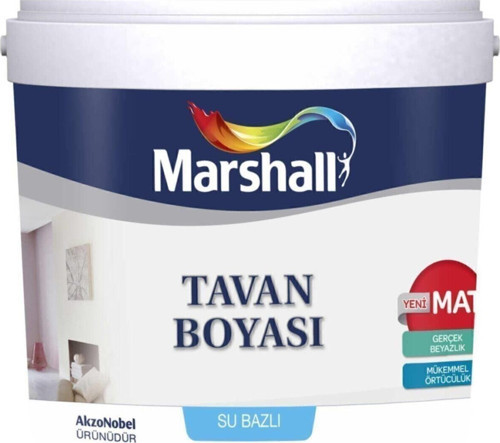 Mat görünümlü, uygulama sırasında sıçratma yapmayan, bembeyaz bir yüzey yaratan tavan boyasıdır.; Beyaz olarak tek rengi mevcuttur ürün gurubu: Iç cephe boya ve astarları-Su bazlı son katyüzeyler: Mat, Düzalanlar: Konvansiyonel sıva, brüt beton, gaz beton, tuğla, sunta, alçıpan vb yapı elemanlarının tavan kısmında kullanılır.; Renk sayısı: Sadece beyaz rengi mevcut Pratik tüketim: tek katta 00 - 040 kg/m² ( 0,060 - 080 l/m² önerilen kat sayısı: 2 kat (alt yüzey durumuna bağı olarak değişebilir) Kuruma süresi: Tam kuruma süresi; min.; 24 saat.; Katlar arası bekleme süresi; min.; 2 saattir.; alt katlar: Marshallite termoplastik astar, macun sp sonrası plastik kokusuz astar (çok ince | kat) Uygulama araçları: Rulo, fırçainceltici/inceltme oranı: Suambalaj tipleri: 17.5 kg.; ÖNEMLİ NOT: Ürünümüz 10,5L olup 17,5Kg ağırlığındadır.