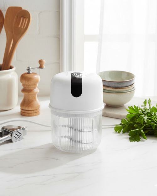Elektrikli sarımsak ezici, modern mutfakların ihtiyaçlarına cevap verecek şekilde tasarlanmıştır. Hafif ve taşınabilir yapısı ile her mutfakta rahatlıkla kullanılabilir. USB şarjlı 1300 mAh bataryası uzun ömürlü kullanım sunar.