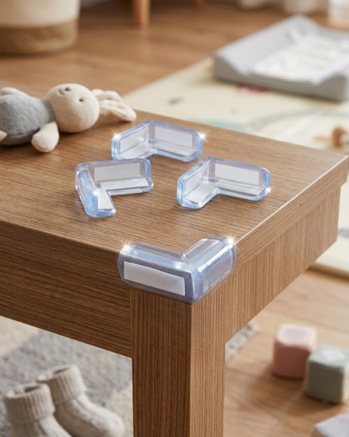 Masa köşe koruyucu seti, çocukların ev içerisinde mobilya köşelerine çarpmaları sonucu oluşabilecek kazaları önlemeye yardımcı olan pratik bir güvenlik çözümüdür. Masa, sehpa, tezgah ve benzeri birçok mobilya köşesinde rahatlıkla kullanılabilir.