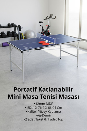 Triathlon T-216 Portatif Katlanabilir Mini Masa Tenisi Masası / 152.4 X 76.2 X 66.04 Cm / 12mm Mdf / Ağ Demir - Image 1