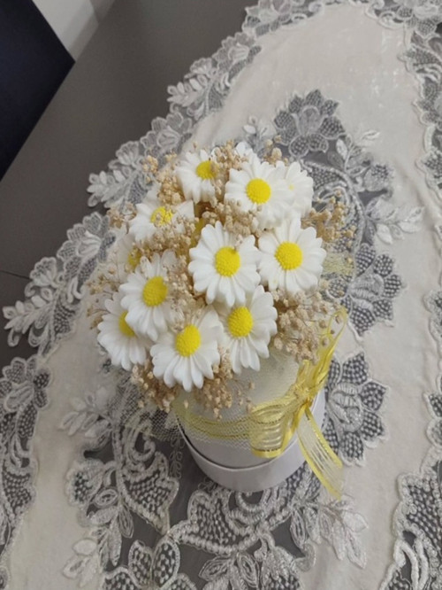 ÜRÜNLER DEMONTE GELECEKTİR. Evinize zarafet katan, bulunduğu ortama hoş bir koku yayan masa üstü dekoratif sabun buketi, tamamen el yapımı olarak özenle hazırlanmıştır.