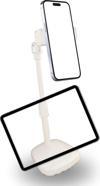 Masa Üstü Tablet ve Telefon Tutucu Plastik Aparat, Beyaz renkli şık tasarımı ile hem tablet hem de telefonlarınız için ideal bir stand çözümüdür. Çalışma masasında, mutfakta, yatak odasında veya ofiste, cihazlarınızı dik ya da yatay konumda sabit tutarak kullanım kolaylığı sağlar.