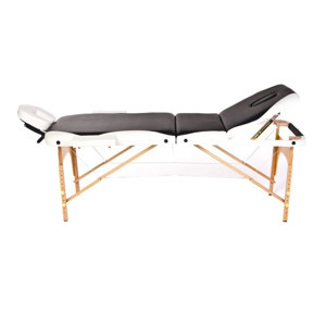 Masaj Masası Siyah&Beyaz | Ahşap Ayaklı, Ayarlanabilir Yükseklik, Taşıma Çantalı GM-305