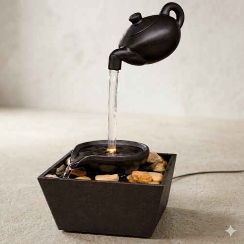 Hediye Masaüstü Dekoratif Su Şelalesi Meditasyon Sakinleştirici Çaydanlık Akan Su Tasarımı Ev Dekoru Obje Siyah