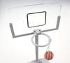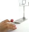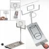 Metal bir basketbol sahası ve saha çizgileri üzerinde, basketbol topu ve atış düzeneği dahil tamamıyla bir masaüstü eğlence setidir.