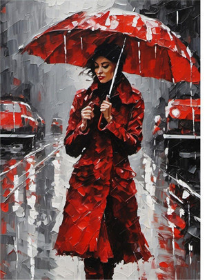 Kırmızı Şemsiyeli Kadın Desenli Ahşap Tablo 35 cm x 50 cm