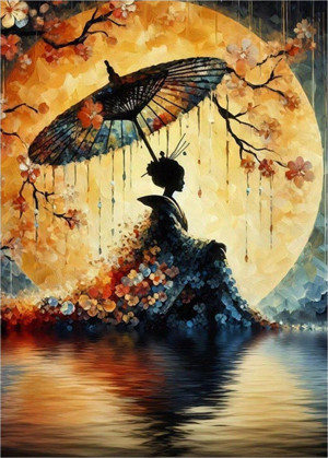 Şemsiyeli Kadın Ve Ay Hediyelik Ahşap Tablo 25 cm x 35 cm