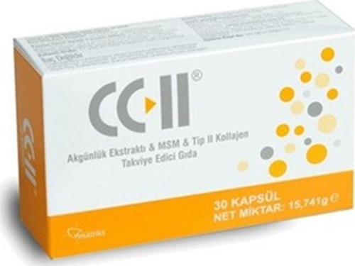 Cc-Iı 30 kapsül - Akgünlük ekstraktı & msm & tip 2 kollajen takviye edici gıda Ürün markası: Ürün boyutu:30 kapsül Özet bilgi: Akgünlük ekstraktı & msm & tip ıı kollajen içeren takviye edici gıda Ürün açıklaması : Vücudun ihtiyacı olan vitamin ve mineralleri içeren takviye edici gıdadır. Haricen kullanılır. Ilaç değildir. Ürün resmi : Ürün içeriği : Msm (metil sülfonil metan)(200 mg), akgünlük ekstraktı (100 mg), tip ıı kollajen (10 mg) içerir. Kullanım şekli ve önerisi : Takviye edici gıda olarak günde 1 kapsül tüketilmesi tavsiye edilir. Tavsiye edilen günlük porsiyonu aşmayın. Takviye edici gıdalar normal beslenmenin yerine geçemez. 11 yaş ve üzeri için kullanım için uygundur. Çocukların ulaşamayacağı yerde saklayınız. Hamilelik ve emzirme dönemi ile hastalık veya ilaç kullanılması durumlarında doktorunuza danışın. Yetişkinler içindir.