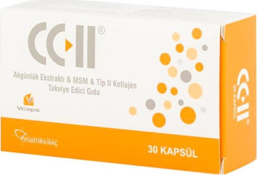 - Cc Iı Takviye Edici Gıda 30 Kapsül Ürün Markası: Matriks Ürün Boyutu: 30 Kapsül Özet Bilgi: Takviye Edici Gıda İçerik: Msm(Metil Sülfetil Metan) (38.12), Bitkisel Kapsül (Hidroksi Propil Metil Selüloz), Akgünlük Ekstraktı (19.06), Maltadekstrin, Tip Iı Kollajen ( 1.9), Stabilizatör ( Yağ Asitlerinin Magnezyum Tozları (E270b) 1 Kapsüldeki Günlük Miktar: Msm……………………..……200mg Akgünlük Ekstraktı………100mg Tip Iı Kollajen……………….10mg