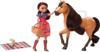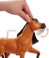 Yumuşacık yelesi ve kuyruğuyla Spirit 20 cm, at battaniyesi, çiçekli bir elbise ve annesinin ünlü botlarını giyen Lucky 18 cm dâhildir.