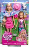 Barbie ve küçük kız kardeşi Stacie'nin yer aldığı bu bebek seti ile oyun oynarken kız kardeşlerin bağını güçlendirin. Yaz kıyafetleri ve aksesuarları, Barbie and Stacie to the Rescue adlı animasyon filmindeki tarzlardan ilham alınarak tasarlanmıştır. Her zaman muhteşem görünen büyük kardeş Barbie, omuzları açık ve yakası fırfırlı bir elbise ile spor ayakkabı giyer. Sportif ve maceracı kız kardeşi Stacie ise eğlenceli bir bluz, şort ve spor ayakkabı giyer. 3 yaş ve üzeri çocuklar fotoğraf makinesi, dürbün ve hasır şapkanın yanı sıra iki evcil köpekçik ile aile maceralarını canlandırabilir.