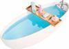 Barbie bebek, rahatlatıcı bir banyo yapmak için ihtiyacı olan her şeye sahip: küvet, küvet tepsisi, raf, havlu, büyük bir fırça, küçük bir fırça, vücut losyonu, sabun, bitki, mum, dekoratif levha ve bir yavru köpek. Bu çeşitli aksesuarlar sayesinde çocuklar yaratıcı hikayeler canlandırabilir. Ayrıca raflar ve tepsi daha sağlam olmaları adına 'tak ve oyna' tasarımına sahiptir.