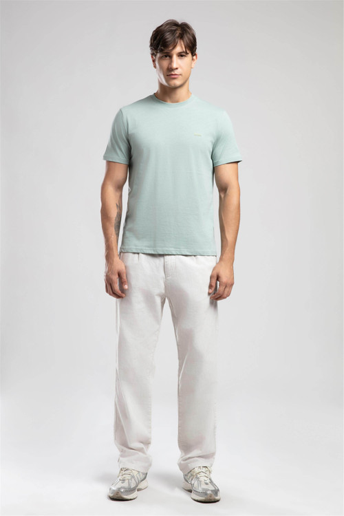 Matteo Orta-Yüksek Bel Bol Düz Kesim Düz Paça %100 Pamuk Ekru Erkek Pantolon