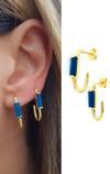 Mavi akik Taşlı 925ayar Gümüş Üzerine Altın Kaplama Tasarım Oval Halka Küpe
