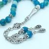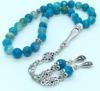 Mavi akik tespih esnek misina ipine dizilmiştir.