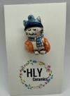 Mavi beresi ve turuncu montuyla kış havasını sevimli bir şekilde yansıtan bu seramik kedi, renkli detaylarıyla dikkat çeker.