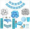 Mavi Beyaz 8 Kişilik Full Doğum Günü Seti