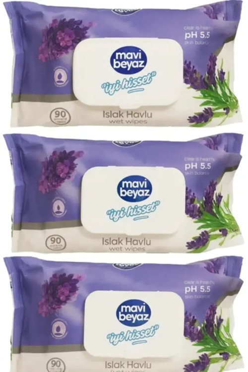 Mavi Beyaz Islak Havlu Mendil 90 Yaprak Lavanta 3 Lü Set 90 Yaprak Plastik Kapaklı (270 Yaprak) Havanız değişsin! Özel geliştirilmiş formülü cildinizin pH. 5.5 dengesi ile uyumludur. Dermatolojik ve mikrobiyolojik olarak test edilen Mavibeyaz Islak Havlular Alkol ve paraben içermiyor. Parfümerlerce hazırlanmış özel kokuları ile kendinizi iyi hissedeceksiniz Evde, arabada, ofiste ihyiyacınız olan hijyen ve ferahlık bu kapağın altında!