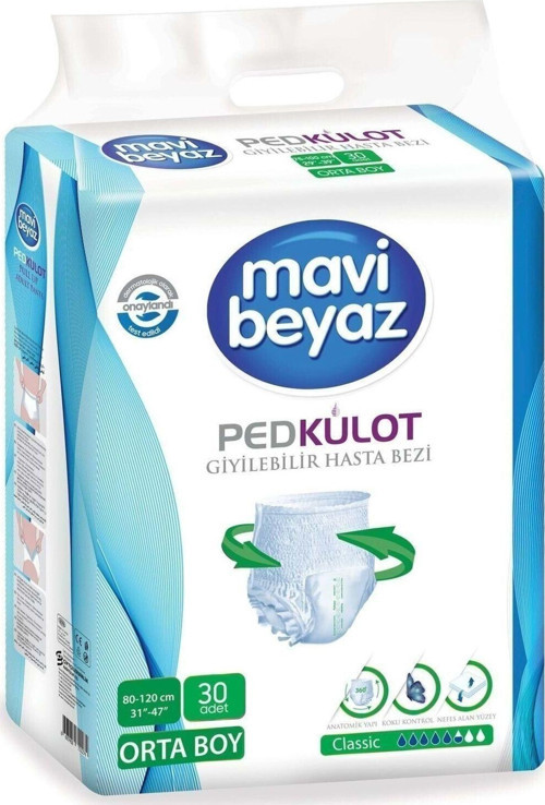 Mavi Beyaz Ped Külot M Beden Hasta Bezi 30'lu Paket Bel ölçüleri 75 - 100 cm