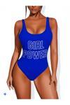 Mavi Çok Dar Kalıp Girl Power Baskılı Mayo