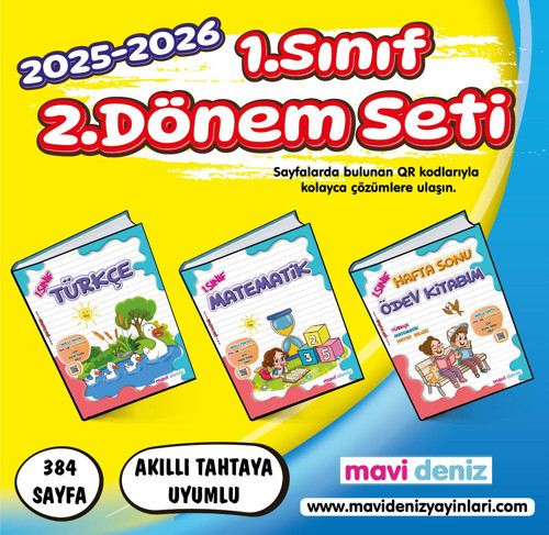 Mavi Deniz Yayınları Mavi Deniz 2026 1. Sınıf 2. Dönem Türkçe + Matematik + Hafta Sonu 3 Kitap Seti Güncel Müfredat