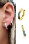 Ose Shop Mavi Geçişli Zirkon Taşlı 925ayar Gümüş Üzerine Altın Kaplama Luxury Tasarım Bombeli Halka Küpe 1.5cm