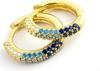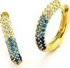 Mavi Geçişli Zirkon Taşlı 925 ayar Gümüş Üzerine Altın Kaplama Luxury Tasarım Bombeli Halka Küpe 1.5cm