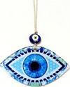 Mavi göz modelli duvar süsümüz 15 santimetre eninde, 8 santimetre boyundadır. Füzyon cam malzeme kullanılarak üretilen duvar süsümüz ip dahil 23 santimetre boyundadır.