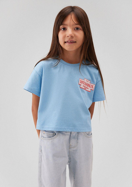 Mavi nin kız çocuk koleksiyonundan İstanbul Baskılı Mavi Tişört.