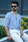 Etikmen Mavi Keten Apaj Yaka Oversize Erkek Gömlek