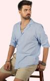 Mavi Keten Apaj Yaka Oversize Erkek Gömlek