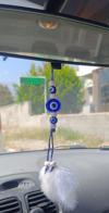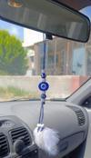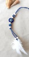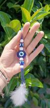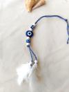 Mavi Kuş Tüylü Nazar Boncuklu Dikiz Ayna Süsü Kötü Göz Kovucu Araba Süsü